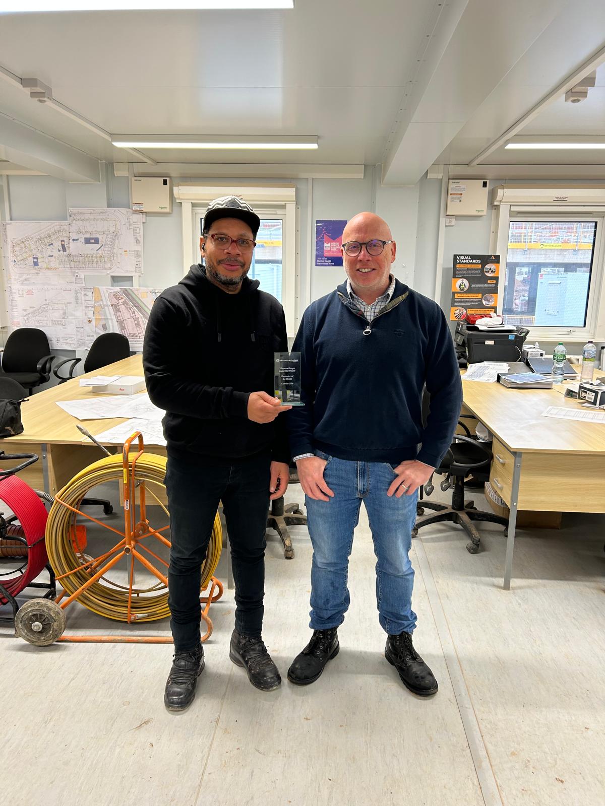 Pictured: Kearon, Project Manager, and Mike, our Construction Director, proudly showcasing the award.